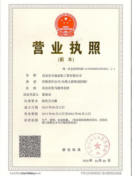 昌邑市天地農(nóng)機(jī)工貿(mào)有限公司